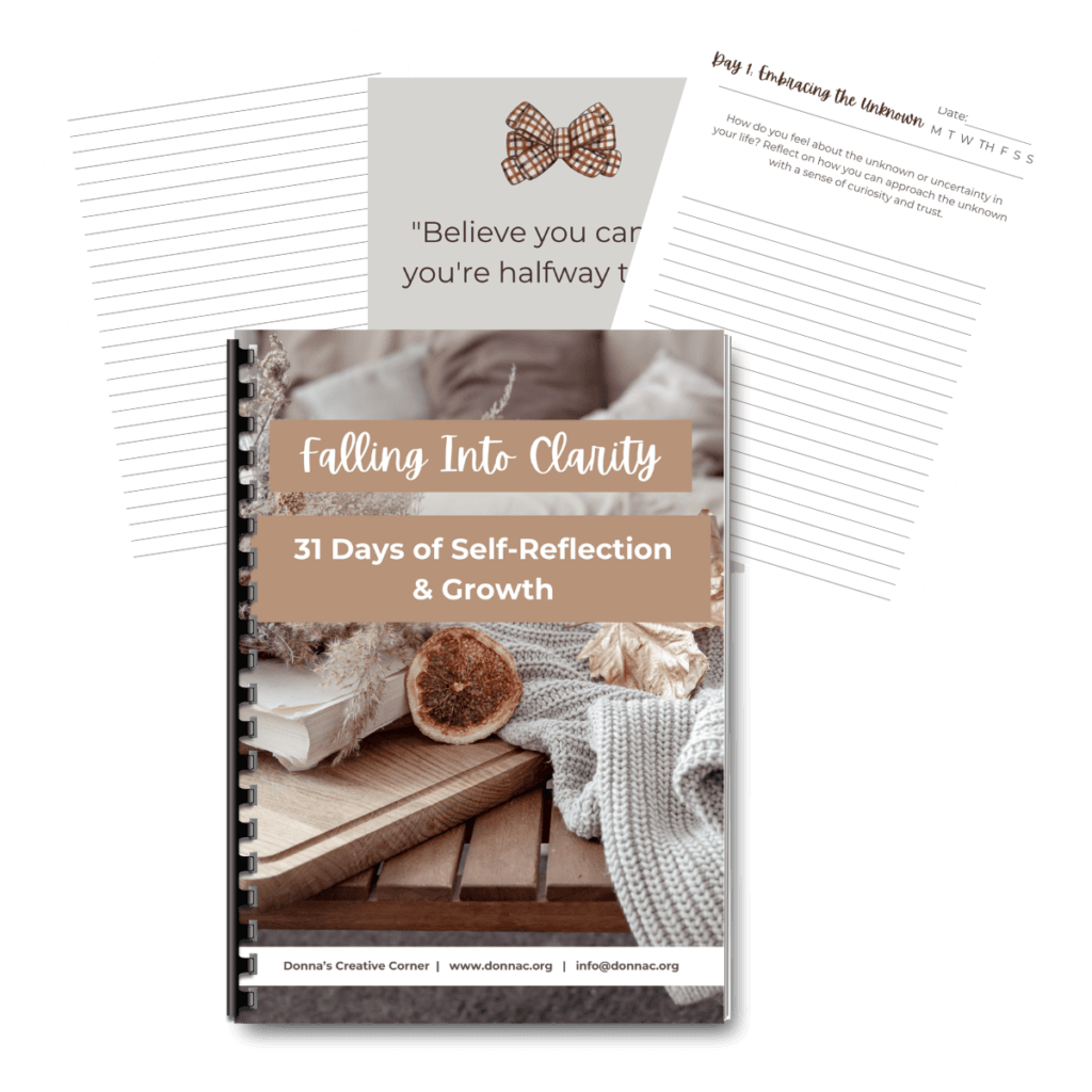 At Donna’s Corner, my goal is to provide you with the tools to live with clarity, purpose, and joy. After creating the free 7-day journal, I wanted to offer something deeper and longer-lasting—the Falling Into Clarity Journal is exactly that. Let’s keep this growth going together!